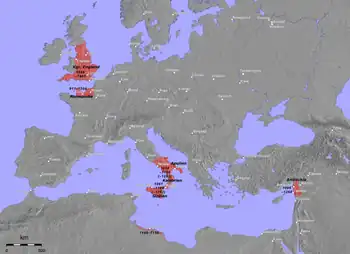 Les Normands conquirent progressivement l’Italie du Sud et la Sicile, où ils jetèrent les fondements du royaume de Sicile.