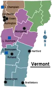 La région s'étend sur 2 054 milles carrés (5 319,84 km2), soit 21 % de la superficie totale du Vermont[3].