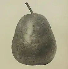 Grosse ou assez grosse, la poire, variable en sa forme et sa grosseur, est de forme tantôt de Bon Chrétien, tantôt turbinée, toujours bien bosselée au pourtour.