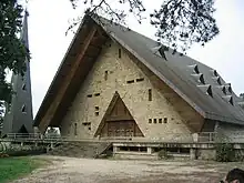 La chapelle, bâtie sur les plans de l'architecte Henri Enguehard et comportant des vitraux réalisés par Gabriel Loire[3], est inaugurée en 1967[4].