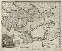 Depuis la fin du XVIIIe siècle, la Nouvelle-Russie (Новороссия en russe, transcriptible Novorossia en alphabet latin) était une colonie de peuplement de l'Empire russe en son sud, s'étendant de la mer d'Azov au littoral de la mer Noire. Elle englobait des régions conquises par l'armée de Catherine II de Russie sur les cosaques et l'Empire ottoman, lors des guerres russo-turques de 1768 à 1774[1], destinées à la colonisation de peuplement russe. L'établissement en masse des colons débuta dès la fin du XVIIIe siècle, sous les auspices de Grigori Potemkine. Elle donna lieu à la création des célèbres villages dit « Potemkine » dont la réalité historique est aujourd'hui contestée.