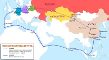 La nouvelle route de la soie (chinois : 丝绸之路经济带 ; pinyin : ; litt. « ceinture économique de la route de la soie »), aussi nommée la ceinture et la route (chinois : 一带一路 ; pinyin : [2], en anglais : One Belt, One Road ou OBOR[3]), puis à partir de 2017 Initiative route et ceinture (en anglais : Belt and Road Initiative, BRI) est un ensemble de liaisons maritimes[4] et de voies ferroviaires entre la Chine, l'Europe et l'Afrique passant par le Kazakhstan, la Russie, la Biélorussie, la Pologne, l'Allemagne, la France, le Royaume-Uni, la république de Djibouti et le Somaliland. Ce projet engloberait 68 pays représentant 4,4 milliards d’habitants et 40 % du PIB mondial[5],[6].