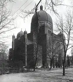 Le bâtiment en brique est construit dans le style mauresque. Un des éléments les plus caractéristiques est le grand dôme hémisphérique à 8 pans reposant sur un tambour octogonale, clairement visible de n’importe quel endroit de la ville. À côté de la synagogue, ont été construits des bureaux communautaires, une petite salle de prière, une bibliothèque, une salle pour les archives, une salle de réunion pour le conseil de la communauté et une salle de rangement pour le matériel liturgique. Il y a probablement aussi un mikvé.
