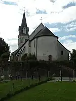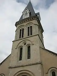 Église paroissiale actuellement Saint-Léonard, Saint-Mélaine initialement[44]. Crypte du Haut Moyen Âge sous le chœur. Le chœur et une partie de la nef sont romans. Cette dernière a été agrandie au XVe siècle ou XVIe siècle. Le porche a été édifié en 1880.