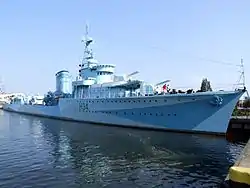 | Armement | 4 tourelles doubles de 102 mm 4 pièces simples AA de 40 mm 4 pièces simples AA de 20 mm 4 mitrailleuses AA 4 tubes lance-torpilles de 533 mm 2 rampes de mouillage de mines sous-marines. |