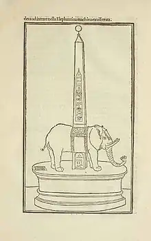 L'éléphant surmonté d'un obélisque est un thème qui reproduit une gravure du Songe de Poliphile, dont Alexandre VII possédait un exemplaire annoté de sa main[1]. Un monument du même type, la Fontaine de l'éléphant, regroupant un éléphant et un obélisque antiques, a été dressé au XVIIIe siècle à Catane, sur la place de la Cathédrale.