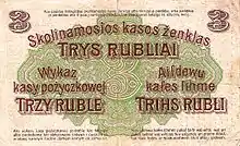 De fait, cette monnaie devint alors rapidement un élément clé de l'économie, apportant les capitaux industriels requis dans la région, et l'autonomie économique qui va avec. Un des principaux objectifs de l'administration de Ludendorff était l'exploitation des ressources - notamment agricoles - de ces territoires, mais également de sa main d'œuvre. Les réquisitions opérées sur les récoltes ou le bétail, tout comme l'enrôlement de force de travailleurs ouvriers étaient monnaie courante[12]. À Kaunas, un des organismes de l'autorité d'occupation devait ainsi s'assurer que dans le Militärstaat Ober Ost, les intérêts de l'armée passent toujours avant les intérêts locaux.