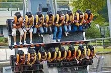 - (en) « Bolliger & Mabillard Products: Dive Coaster » (consulté le ) : « The straight, vertical drop with riders facing downwards creates a completely different experience. The uniqueness of the ride is enhanced by the configuration of the trains. »