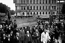Le 15 juin, l'URSS envahit la Lituanie[19]. Les troupes soviétiques attaquent les gardes-frontières lettons à Masļenki (en)[20]. Le 16 juin 1940, l'URSS envahit l'Estonie et la Lettonie[19]. Selon un article du magazine Time publié au moment des invasions, en quelques jours, environ 500 000 soldats de l'Armée rouge soviétique occupent les trois États baltes, une semaine seulement avant la chute de la France face à l'Allemagne nazie[21].