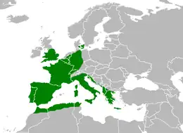 On le trouve en Europe occidentale et méridionale, de la péninsule Ibérique à la Grèce. Très commun dans les pays méditerranéens, il s'est répandu en Europe centrale jusqu'au sud de l'Angleterre et au centre de l'Allemagne. Au Danemark, il reste rare et sporadique. Il a été aussi enregistré au Maghreb. Il est absent des régions alpines et de l'Europe orientale.