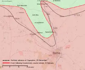 Le , six personnes sont tués dans un bombardement de l'armée de l'air syrienne à Kafr Nabudah et un autre civil est tué à Taybat al-Imam.