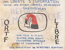 Au mois de mai 1968, l’ORTF compte plus de 12 000 employés, pour la plupart regroupés dans la Maison de la Radio, un immeuble circulaire qui symbolise l’audiovisuel français. Alors que la gauche dénonce une communication instrumentalisée, l’ORTF est sous contrôle et reste à distance des événements qui marquent le début de Mai 68, donnant très peu la parole aux contestataires avant de se réveiller à partir du 12 mai. Jour après jour, l’ORTF se veut rassurante et reste à distance du mouvement. La « gauche dénonce une communication instrumentalisée, par un Office accusé de mensonge, de partialité, de collusion avec le pouvoir et la police »[10]. L'ORTF, à travers les journaux télévisés regardés par 70 % de la population (8,5 millions de téléviseurs sont en service), rend compte des événements et de la violence, mais privilégie le point de vue gouvernemental[11]. Dans ce qui a été conservé des journaux télévisés de la période du 2 au 14 mai, sur 13 à 15 h d’informations, on totalise deux heures consacrées aux événements dont 1 h 30 de parole officielle[12].