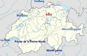 - Radars météorologiques (Albis (Zurich), Monte Lema (Tessin), La Dôle (Genève), Pointe de la Plaine Morte (Valais)