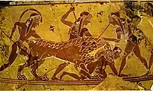 Il s'agit de la première représentation d'hoplites, une innovation dans l'armée grecque de cette époque, qui délaisse le combat singulier au profit de manœuvres de troupes[2]. Cela est notamment illustré par la présence de javelots au lieu d'épées, correspondant à une première phase de l'équipement hoplitique[1].