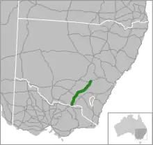 De Albury à Cootamundra, elle est parallèle à la ligne de chemin de fer Sydney-Melbourne. Les grandes villes en route comprennent: Wagga Wagga, Junee, Cootamundra et Young.