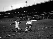 Cette époque est également celle des premières compétitions européennes. Les trois premières participations sont difficiles et voient le club ne pas passer un seul tour de la compétition. Le club découvre l'Europe avec la deuxième édition de la coupe des villes de foire en 1958. Les Lyonnais sont éliminés par l'Inter de Milan par un score de zéro but à sept en match aller à San Siro et un partout au retour[14]. En 1960[note 3], ils sont battus par Cologne XI[15], une sélection des joueurs de la ville de Cologne. Défaite par trois buts à un en Allemagne, la victoire deux buts à un à Lyon ne suffit pas. Enfin en 1961, l'équipe est éliminée par Sheffield Wednesday[16]. Malgré une victoire par quatre buts à deux au match aller, les Lyonnais s'inclinent par cinq buts à deux au retour.