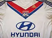 Historiquement, la couleur des maillots domiciles de l'Olympique lyonnais est le blanc. Les premières années et jusqu'en 1961 le maillot blanc est recouvert d'un liseré en forme de « V » formé de deux bandes rouge et bleue[133], qui représentent les couleurs de la ville de Lyon. Le short est de couleur bleue et la place de l'écusson rouge sur le maillot est soit juste en dessous du col, soit sur le côté gauche de la poitrine.