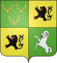 Blasonnement : Écartelé ; 1 : de sinople à trois rencontres de cerfs d'or ; 2 et 3 : d'or au demi-lion coupé de la partie inférieure de sable, armé et lampassé de gueules ; 4 : de sinople au demi-bouc coupé de la partie inférieure d'argent, lampassé de gueules.