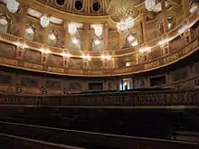 Le plan de salle, nouveau pour l’époque, affecte la forme d’un ovale tronqué, et les loges traditionnelles sont remplacées par de simples balcons, en retrait l’un sur l’autre, avec des séparations à hauteur d’appui. Ces dispositions favorisent la vision et l’audition ; il n’y a pas d’angle mort dans cette salle et l’acoustique y est particulièrement remarquable, d’autant plus qu’étant entièrement construite en bois, elle résonne comme un violon.