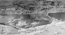 Photographie de reconnaissance du Tirpitz alors que l'écran de fumée s'apprête à cacher le navire.
