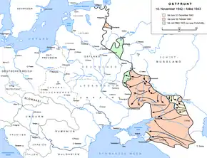- ensuite du (début de l'opération Uranus) au (traversée du Dniepr), le tournant de la guerre, l'Armée rouge reprenant difficilement l'initiative ;