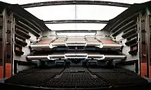 - Le plateau inférieur est situé au 6e dessous (6e sous-sol). Il comprend également un large plateau tournant et 4 espaces de stockage aux mêmes dimensions que la scène, ainsi que des espaces de stockage supplémentaires.