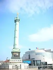 L'opéra Bastille[alpha 1] est une salle d'opéra moderne située sur la place de la Bastille à Paris. Elle est conçue par Carlos Ott et inaugurée en 1989 à l'occasion des festivités du bicentenaire de la Révolution dans le cadre des grands travaux pour Paris. Avec l'opéra Garnier, elle est l'une des deux salles constituant l'Opéra de Paris, institution publique française dont la mission est de mettre en œuvre la représentation de spectacles lyriques ou de ballet, de haute qualité artistique.