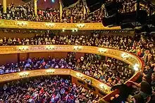 La famille royale suédoise du roi Carl XVI Gustaf réserve la loge royale, située au premier niveau de l'auditorium, au-dessus de la fosse d'orchestre.