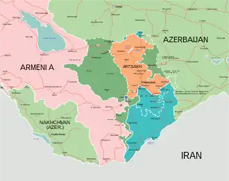 - Zones capturées par l'Azerbaïdjan pendant la guerre de 2020.