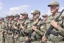 Après la guerre, conformément à l'accord de cessez-le-feu signé le 10 novembre 2020, la Russie envoie dans la région un contingent de maintien de la paix de 1 960 militaires[1], fourni par la 15e brigade de fusiliers motorisés de la Garde des forces terrestres russes[2] et dirigé par le lieutenant-général Roustam Mouradov[3]. Les forces de maintien de la paix, dont le quartier général est situé près de Stepanakert, ont établi des postes d'observation le long de la ligne de contact au Haut-Karabagh et le long du corridor de Latchine[4]. À partir de novembre, la Russie aide le comité international de la Croix-Rouge à retrouver et à échanger les corps des soldats tombés au combat des deux côtés, les forces de maintien de la paix russes commençant ensuite des opérations de déminage dans la région[5].