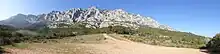 Blocs cyclopéens, formant un mur (enceinte ?). Situé à environ 300m au sud du site principal de l'oppidum de Bramefan. À l'arrière, la Montagne Sainte-Victoire ;