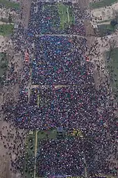 La manifestation à l'appel du collectif « La Manif pour tous » réunit des mouvements divers, comprenant associations, partis politiques, personnalités ainsi que des représentants des principales religions[78],[N 5] et rassemble 340 000 personnes selon la préfecture de police (chiffre définitif de la préfecture de police le 18 janvier avec 10 % de marge d'erreur)[79], un million de personnes selon les organisateurs[80]. Elle comprend trois cortèges qui, partis de la porte Maillot, de la place d'Italie et de la Place Denfert-Rochereau, convergent vers le Champ de Mars, lieu du rassemblement final.