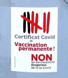 Pour lutter contre la défiance à l'égard de la vaccination, les autorités gouvernementales de nombreux pays mettent en place des politiques d'incitation ou de contrainte à la vaccination, telles que le passe sanitaire en Europe[19],[18].