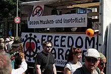Le , le mouvement réussit à rassembler environ 15 000 personnes à 20 000 personnes à Berlin, laquelle comprenaient des banderoles s'opposant au port du masque et à la vaccination obligatoire[22].