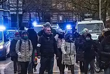 Des militants néonazis auraient fait partie de la foule, qui a refusé de se disperser et a bloqué la circulation lorsqu'elle a commencé à se diriger vers le Parlement national. La police est intervenue et a arrêté certains manifestants[36].