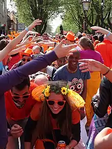 Le , à l’occasion de l’abdication de la reine Beatrix et de l’intronisation de son fils Willem-Alexander comme roi des Pays-Bas, près de 800 000 Néerlandais étaient présents dans les rues d’Amsterdam. Du palais royal d'Amsterdam, face à la place du Dam, la principale place amstellodamoise, la désormais princesse Beatrix, le nouveau roi Willem-Alexander et la reine Máxima, saluent une foule de 20 000 personnes, vêtue en partie d’orange[5],[6].