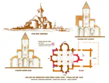 Il lui donne le plan le plus logique en Occident pour édifier une église voûtée. Au centre d'un carré de dix mètres environ, quatre piles déterminent un carré au-dessus duquel s'élève une tour centrale. Sur chaque face de l'oratoire de grandes absides au tracé outrepassé font saillie. Deux absidioles flanquent l'abside ouest.