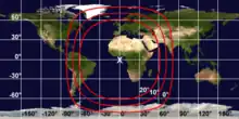 L'avantage des satellites de télécommunications circulant en orbite géostationnaire est qu'ils sont visibles sur une grande partie de l'hémisphère qui leur fait face : de 81° de latitude nord à 81° de latitude sud (les régions proches des pôles sont donc exclues) et sur 81 degrés en latitude de part et d'autre de la position du satellite (ce qui exclut une frange à l'est et à l'ouest). Pour les stations terrestres qui émettent et reçoivent les signaux, le satellite semble fixe dans le ciel et l'antenne peut être pointée de manière permanente dans la même direction, ce qui réduit fortement sa complexité et donc son coût. Toutefois, l'altitude élevée du satellite génère un délai (latence) perceptible dans le temps de transmission de la communication. Le signal met 240 millisecondes pour aller de son émetteur terrestre au satellite et la même durée pour revenir au récepteur[17]. Ce délai constitue une gêne pour toutes les applications sensibles à la latence[18]. C'est le cas notamment de la téléphonie et des applications informatiques. Aussi les satellites de télécommunications circulant sur une orbite géostationnaire sont utilisés principalement par des applications unidirectionnelles comme la diffusion de chaines de télévision[19].