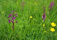 Parmi les Anacamptis, l'orchis des marais, (Anacamptis palustris), très rare est de couleur plus claire[4].