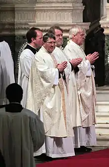 Ces trois hommes, qui sont entrés en pleine communion avec l'Église catholique le précédent, sont ordonnés prêtres catholiques le jour même de l'érection de l'ordinariat. C'est le plus jeune des trois, Keith Newton, qui est nommé ordinaire, c'est-à-dire responsable de la nouvelle structure[5],[6]. Il a des prérogatives équivalentes à celles d'un évêque responsable d'un diocèse catholique, mais, étant marié, il ne peut lui-même être sacré évêque.