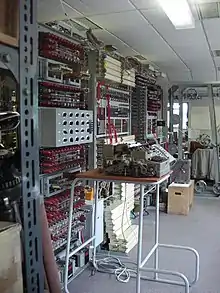 Certains enfin affirment que l'IBM SSEC, opérationnel en , aurait été le premier ordinateur à programme enregistré[20]. Cette affirmation est controversée, à cause de la nature hiérarchique de la mémoire de l'IBM SSES, et à cause de certains aspects de ses opérations, comme l'accès aux relais ou aux rubans magnétiques qui fonctionnaient par branchements manuels[21].
