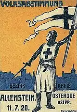 Après le traité de Versailles, la Prusse orientale est séparée du reste de l'Allemagne. Cette cession territoriale a donné lieu à des associations avec l’État de l’Ordre Teutonique en tant que « rempart allemand dans le déluge slave » et établit des parallèles avec la situation de politique étrangère de l’Ordre en 1466. Lors du plébiscite du 11 juillet 1920 à Olsztyn, un vote a lieu pour départager l'appartenance nationale de la Prusse-Orientale méridionale en raison de différends frontaliers avec la Pologne. Dans le cadre de ces votes, la partie allemande rappelle intensément la « tradition de l’Ostland » de l’Ordre Teutonique. Des rues entières sont décorées de croix sur des fanions et des drapeaux.