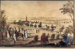 Sachant qu'il ne parviendra pas à satisfaire son idéal de solitude et de pauvreté dans le climat de Molesme où s'opposent les partisans de la tradition et ceux du renouveau, Robert, avec l'autorisation du légat du pape Hugues de Die, accepte le lieu solitaire situé dans la forêt marécageuse du bas-pays dijonnais que lui proposent le duc de Bourgogne Eudes Ier et les vicomtes de Beaune, de lointains cousins, pour se retirer et pratiquer avec la plus grande austérité la règle de saint Benoît[19]. Dans ce lieu proche de la vallée de la Saône, à vingt-deux kilomètres au sud de Dijon, il trouve un « désert », couvert de cistels (roseaux)[note 1]. Albéric et Étienne Harding, ainsi que vingt-et-un moines fervents, l'accompagnent dans son « affreuse solitude » où ils s'installent le , sur le site de La Forgeotte, alleu concédé par Renard, vicomte de Beaune, pour y fonder une autre communauté dénommée pour un temps[20] le novum monasterium.