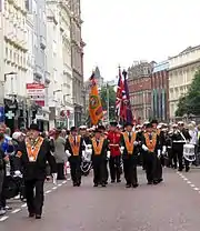 De façon récente, l'ordre d'Orange a perdu des membres dans les zones urbaines, alors que les marches loyalistes prenaient plus d'ampleur, celles-ci semblant s'accorder davantage au goût des jeunes protestants urbains pour des parades fréquentes, une plus grande tolérance à l'égard de la consommation d'alcool, les bannières et une musique paramilitaires, au détriment des rituels formels et des assemblées orangistes[7]. Un autre facteur est la présence du DUP, inversement proportionnelle : une forte présence du DUP est accompagné d'un faible engagement dans le mouvement orangiste, alors que ces deux organisations sont connues pour leur identité ultra-protestante[14], mais l'ordre d'Orange a écarté les pasteurs de l'Église presbytérienne libre liée au DUP jusque dans les années 1950, tout en maintenant des liens institutionnels, tant avec l'UUP alors majoritaire qu'avec les grandes Églises protestantes presbytérienne et anglicanes. Cependant, l'ordre et le parti d'Ian Paisley ont fait cause commune dans l'opposition à David Trimble au moment de l'Accord du Vendredi saint de 1998.