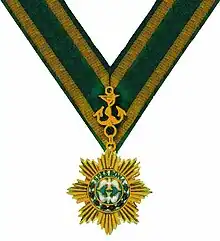 La décoration se présente sous forme d'une étoile d'or à 8 branches composées chacune de 6 rayons. Dans le médaillon situé au centre de l'étoile, apparaissent deux oiseaux blancs sur fond bleu clair. Ce médaillon central est entouré d'un anneau de fleurs surmonté de la devise latine SPES BONA. Le médaillon est rattaché à une ancre d'or accrochée à un ruban.