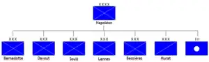- chef d'état-major de l'armée : Maréchal Louis-Alexandre Berthier avec les Capitaines Colbert, Girardin, Lejeune et les lieutenants Perigord et Lagrange à disposition