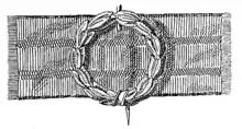 Un ruban rouge avec au milieu une couronne de lauriers d'argent.