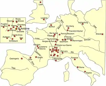 L’extension très rapide de la Fraternité peut s’expliquer en partie par l’efficacité des soins prodigués. En un siècle, elle comptait déjà plus de 100 implantations en dehors du Dauphiné, allant jusqu’en Italie, Espagne, Allemagne et même les lieux saints[1].