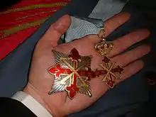 - Les chevaliers grand-croix de mérite portent la croix en écharpe, sans le trophée d'armes ni la couronne, et une plaque de l'Ordre en argent.