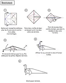 Les modèles d'origami commençant souvent par une même succession de plis, il arrive fréquemment qu'il faille partir d'une « base » (voir Bases classiques de l'origami). Il faut ensuite suivre la suite du diagramme, schéma détaillant par une succession de figures chacun des plis (voir Plis de base en origami) à exécuter pour parvenir au modèle final.